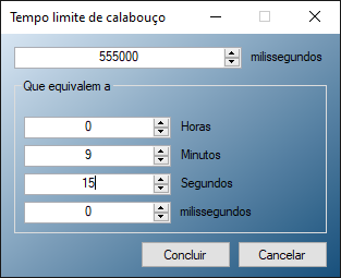 A imagem acima mostra a janela em que se configura o tempo limite de um macro.